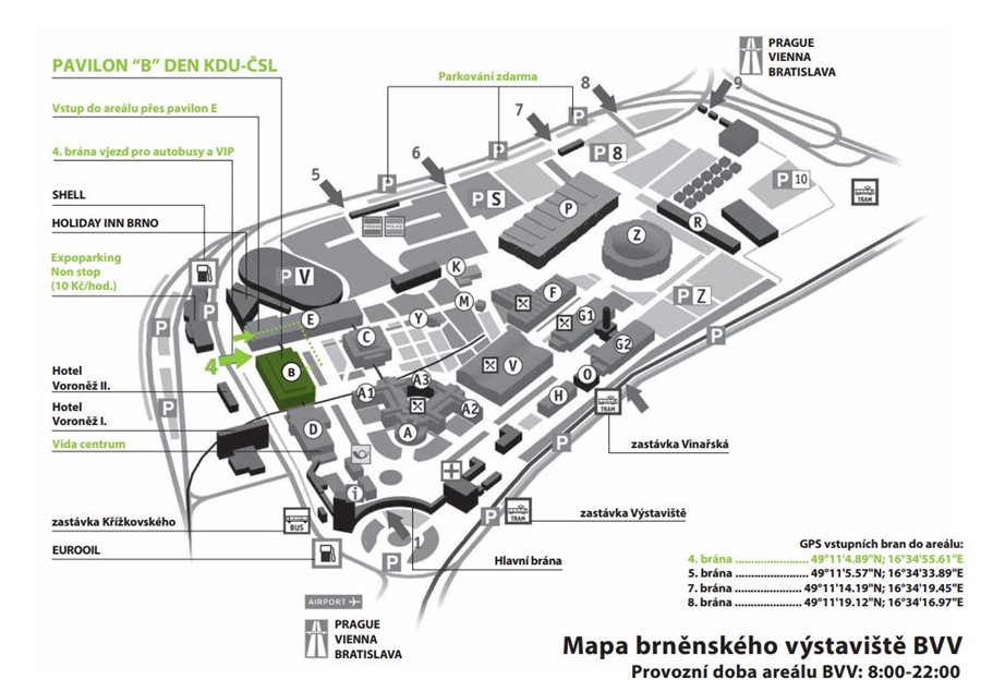 Areál BVV včetně pavilonu B je přístupný bezbariérový.